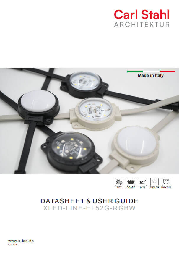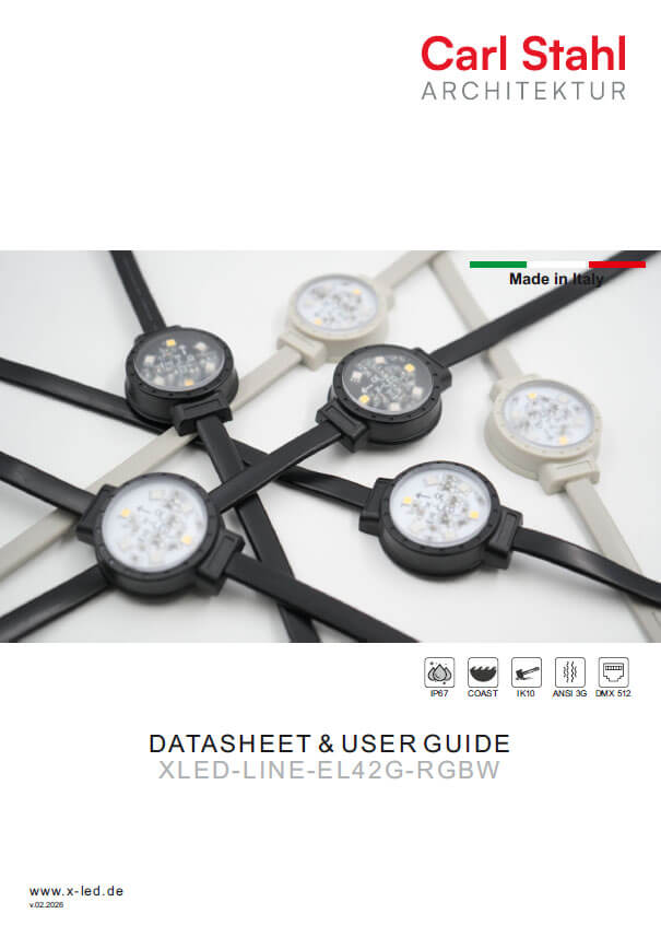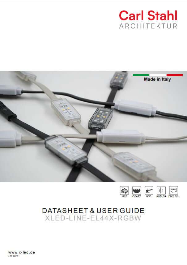 LED-DOTs / LED-LINEs Power Supplies DatenblattX-LED-LINE-EL42 G-RGB DatenblattX-LED-LINE-EL44 X-RGB DatenblattX-LED-PS8-RDM Sonstiges Gewährleistung Guideline Instruction Manual EL-LINE Connector, screwless